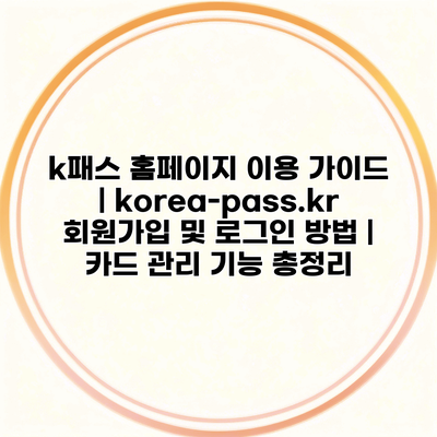 k패스 홈페이지 이용 가이드: 회원가입에서 카드 관리까지 완벽 정리